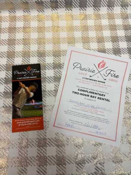Enjoy a complimentary two-hour bay rental at the Toptracer Range at Prairie Fire Golf & Grill in Byron, IL. Perfect for practicing your swing, competing with friends, or enjoying a unique outing with family.