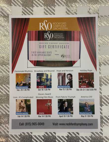 The Rockford Symphony Orchestra is a treat for the music lover! You are bidding on two best-available seats in the upper balcony. valued at $138