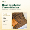 Snuggle up and relax with this cozy throw blanket made using soft, quality yarn, hand crocheted with love by our City Government Affairs Director, Iyana Simba's mom—Navea Harris. This crocheted throw is 42"x52" in size, perfect for those chilly evenings on the couch or to take for an outdoor fall event. It is hand made out of Yarn Bee Soft Stitch 100% acrylic yarn utilizing over 1,680 yards of yarn and 5.5 MM crochet hook. For care, please wash on a gentle cycle with cold water. Low tumble dry or air dry is ideal.