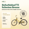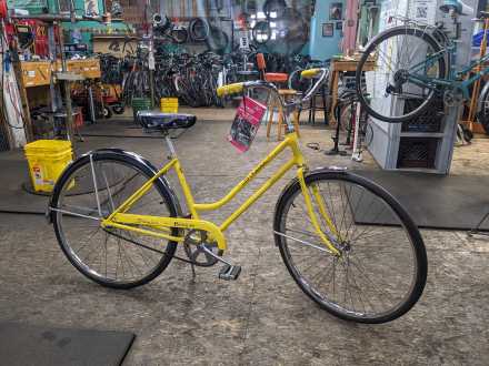 Are you ready to have the coolest wheels in town? This sunflower yellow Schwinn Breeze rolled out of the factory in Chicago's Hermosa neighborhood in February of 1973, making it a contemporary of IEC's founders! It rolls just as smoothly now on its single speed coaster brake 26 x 1 3/8" wheel set as it did then. This classic bike was fully restored and refurbished by the team at Working Bikes. Its original manual even comes along for the ride!