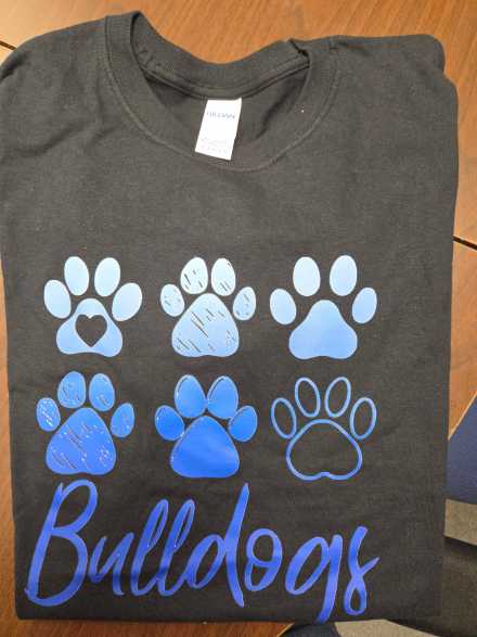 This comfortable tee features a bold and eye-catching design with multiple blue paw prints and “Bulldogs” script across the front, giving it a fun and spirited look. Perfect for game days, school events, or everyday wear, it’s a great way to represent your team wherever you go.