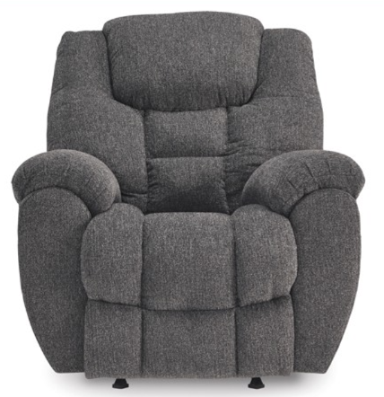 Relax in style and comfort with this contemporary signature motion recliner in a sleek charcoal finish!