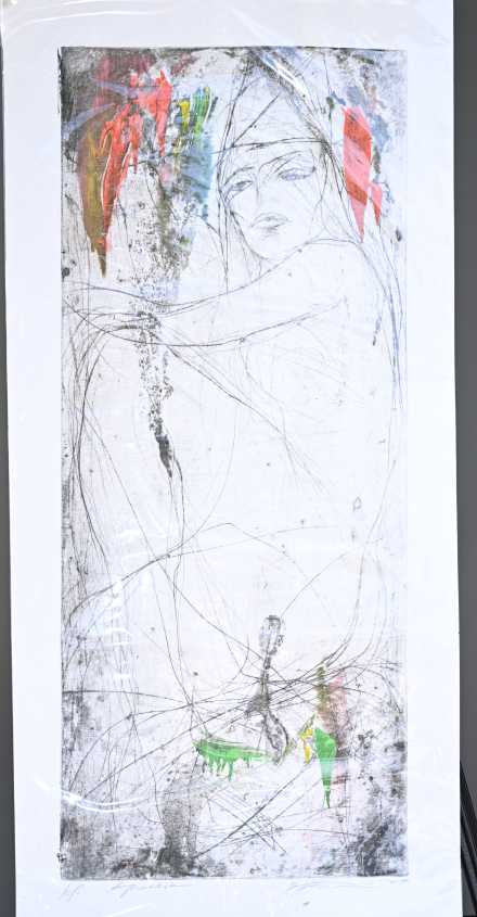 An expressive print by Ukrainian artist Eduard Belsky, created with a mixed printmaking process—drypoint, etching, and monoprint—layered to produce rich textures, incisive line, and dynamic contrasts. A unique impression.