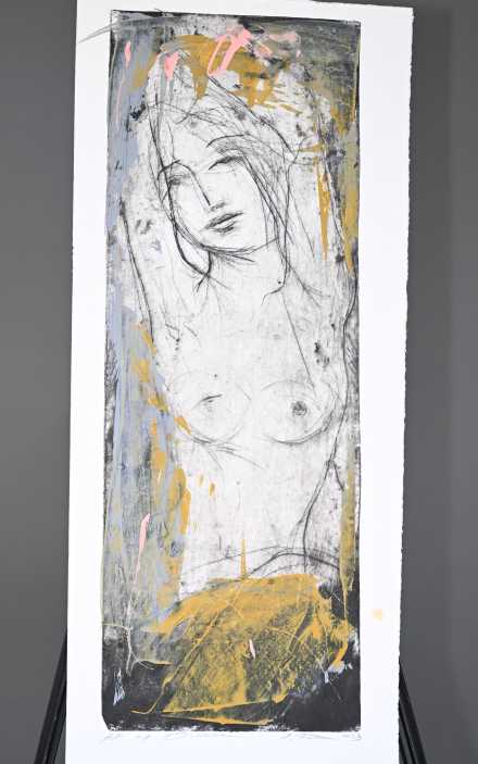 An expressive print by Ukrainian artist Eduard Belsky, created with a mixed printmaking process—drypoint, etching, and monoprint—layered to produce rich textures, incisive line, and dynamic contrasts. A unique impression.