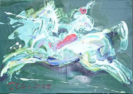 Painting by Ukrainian artist Serhiy Savchenko — a reflection on the dramatic history of humanity and a philosophical meditation on violence and tyranny, armed conflicts, and the ways they are justified.