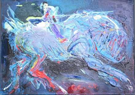 Painting by Ukrainian artist Serhiy Savchenko — a reflection on humanity’s turbulent history and a philosophical meditation on violence and tyranny, armed conflict, and the narratives used to justify them. Oil and acrylic on canvas, 2025.