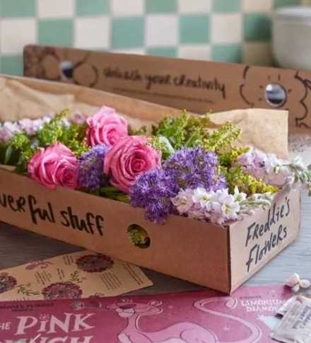 Freddie’s Flowers 6 Boxes over 6 Months. Selection of perfectly chosen seasonal stems. Delivered straight from our amazing growers to you. Beautiful, illustrated arranging guide. Everything you need to help your stems look their best. Freddie's flower food, our secret recipe, formulated to give your flowers a boost.