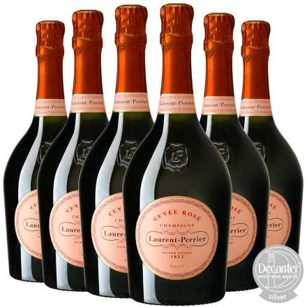 Laurent-Perrier Cuvée Rosé Brut NV case of Champagne. This champagne with its distinctive bottle is one for connoisseurs. Using only Pinot Noir from grand cru villages and the more unusual soak-on-the-skins method, it has delicious raspberry and redcurrant flavours.