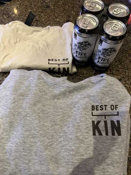 63. Best of Kin - 4-Pack Fire Bloom Honey Lager, Fire Bloom T-Shirt, Best of Kin Hoodie