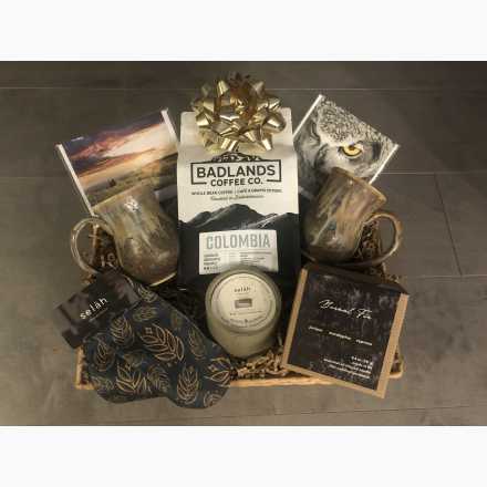 88. Gift Basket with Coffee, Mugs, Candles and more!