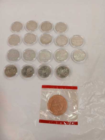 #142 Eighteen Uncirculated State Quarters in Plastic Cases and Treasury Commemorative Coin
