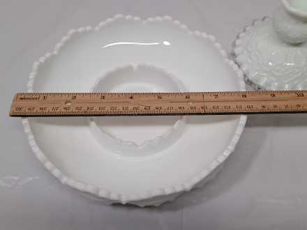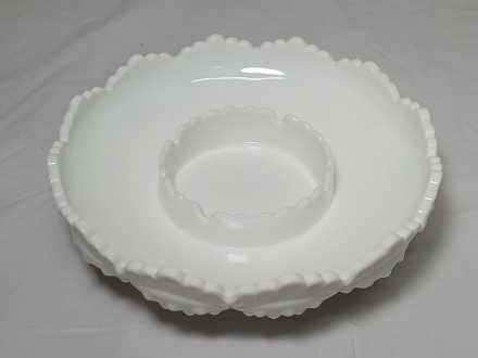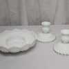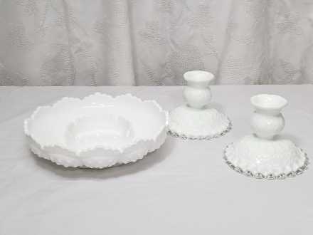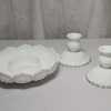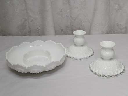 #03 Fenton Chip & Dip and Pair of Spanish Lace Candle Holders