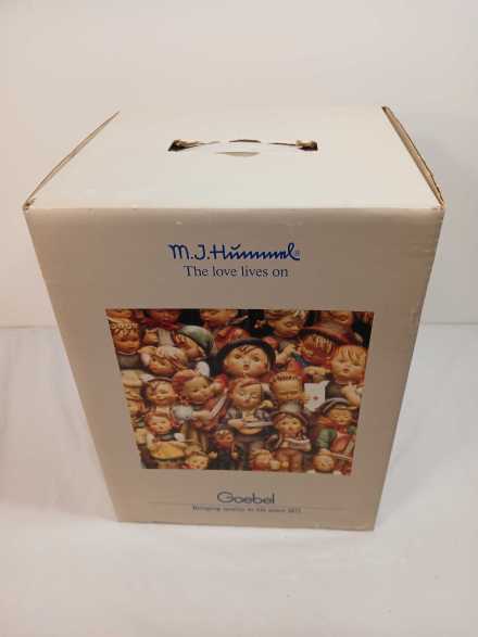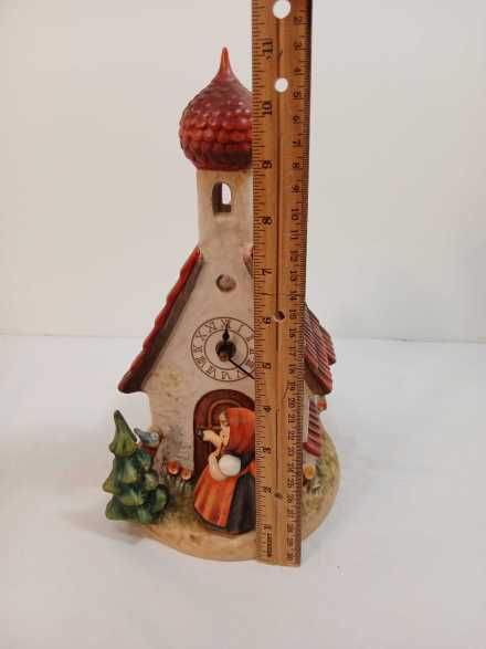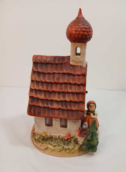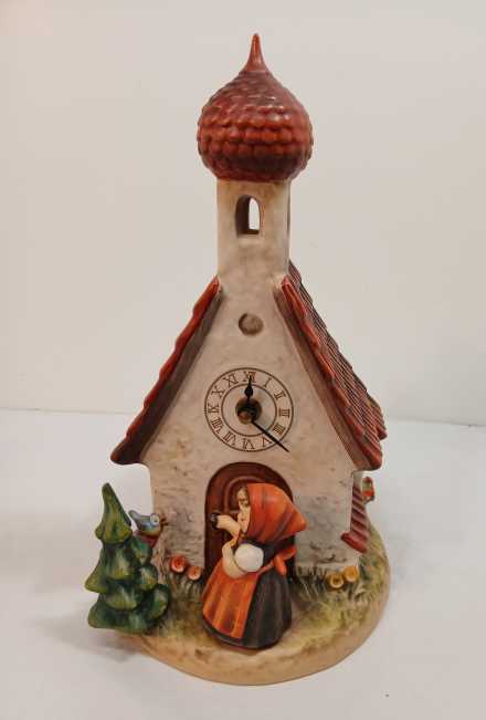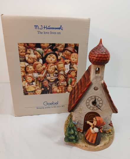 Hummel #442 "Chapel Time" clock, in original box. Battery not included. 11-1/2" tall x 6" wide x 7" deep.