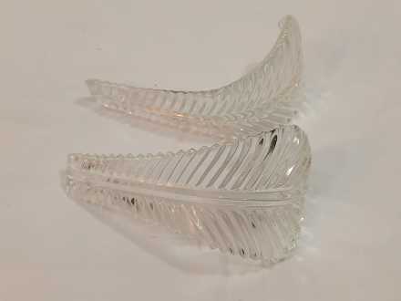 #43 Pair of Glass Leaf Curtain Tie Backs and Wood Dog Pipe Holder