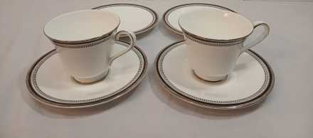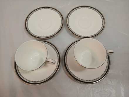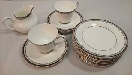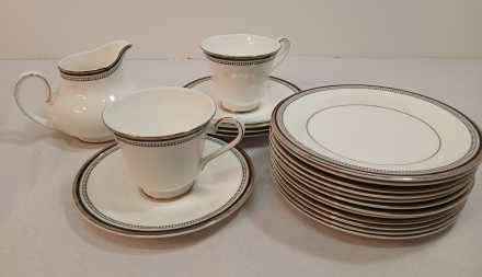 Royal Doulton "Sarabande" china. (2) cups (4) saucers (1) cream pitcher (12) 6-1/2" dessert plates