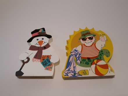 #138 Seven Cat's Meow Snowman Collection Holiday Wooden Shelf Sitters