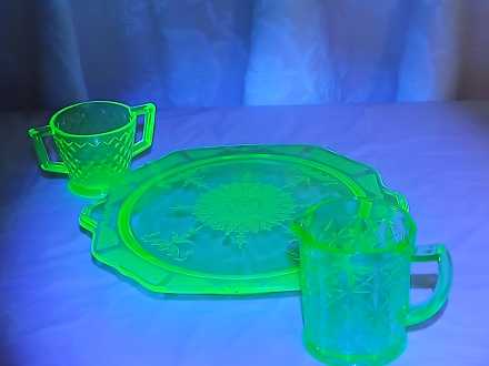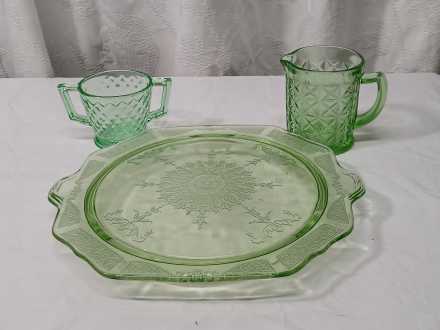 #07 Three Pieces of Green Depression Era Uranium Glass