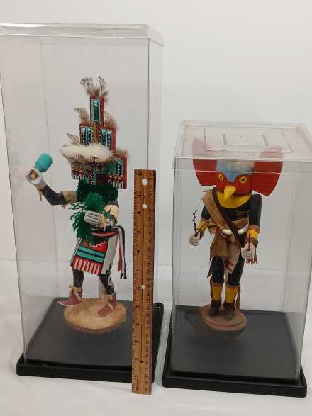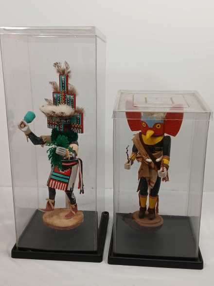 #75 Two Native American Kachina Dolls in Display Boxes