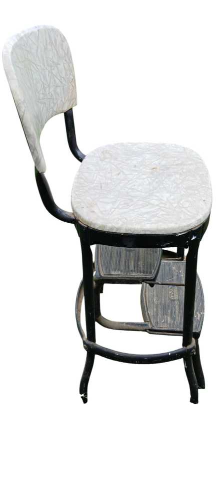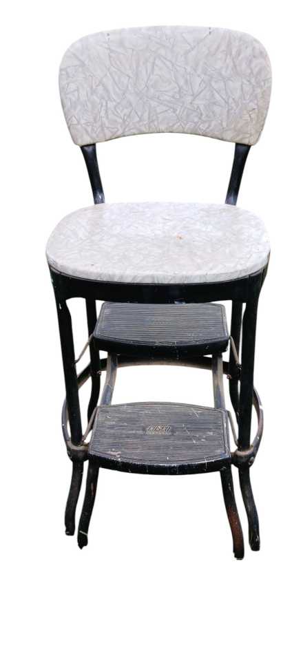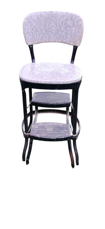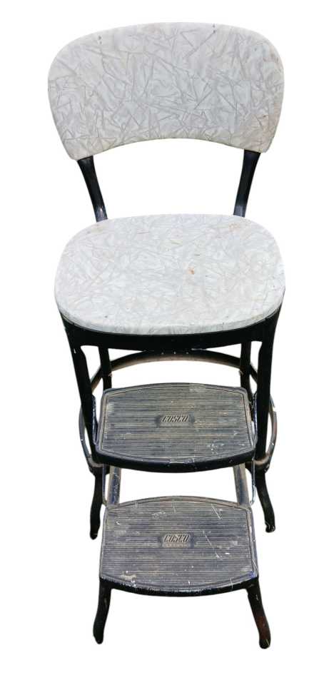 Vintage Cosco kitchen stool. Metal with vinyl seat and back rest.