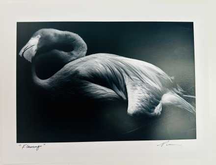 Evocative and serene, “Flamingo” captures a rare moment of stillness in stunning black and white. Photographed at a protected bird sanctuary in Bermuda, the image reveals the elegant curve of the flamingo’s neck and the delicate detailing of its feathers, gently emerging from shadow.
