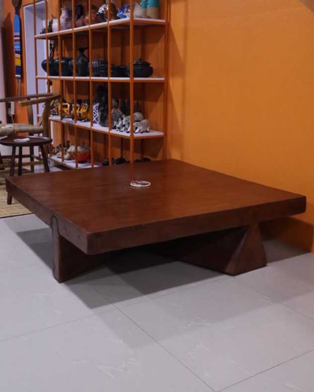 A timeless addition to any space. This minimalist coffee table features geometric triangles on its sides, adding a touch of sophistication to its clean design. Geo seamlessly blends into any interior, exuding elegance in its simplicity. Materials: Cedar Wood, Matte Lacquer Finish Dimension: (47 W x 47 D x 12 H) inches