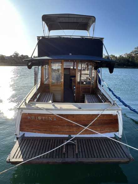 Step aboard Kristina, a much-loved 35-foot Halvorsen timber flybridge cruiser, and experience Sydney Harbour like never before! Recently featured in the Maritime Museum’s 100 Years of Halvorsens celebration, Kristina is a rare gem, originally designed in 1957 for leisurely day cruising. While she retains her vintage charm, she’s in great shape and ready for a fantastic day on the water.