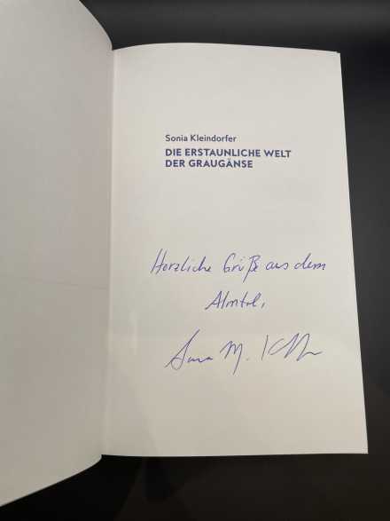Ergänzend zu diesem Tag mit den Graugänsen erhalten Sie eine von Sonia Kleindorfer signierte Ausgabe ihres Buches "Die erstaunliche Welt der Graugänse".