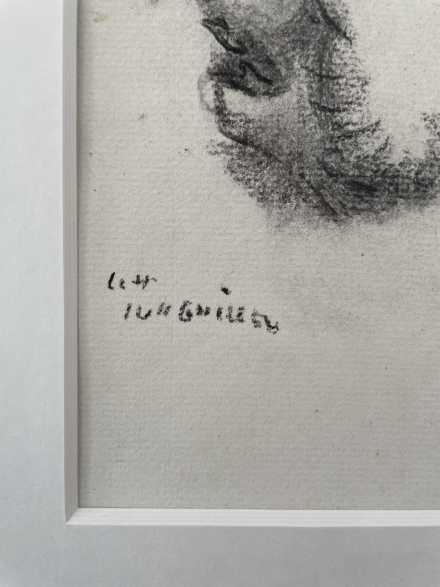 Dieses Kohlebild eines Schimpansen stammt von Ludwig Heinrich Jungnickel (1881–1965), einem Künstler, der für seine ausdrucksstarken und einfühlsamen Tierdarstellungen berühmt wurde.