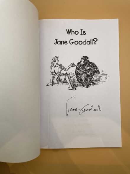 Taschenbuch „Who Is Jane Goodall?“. Signiert von Dr. Jane Goodall
