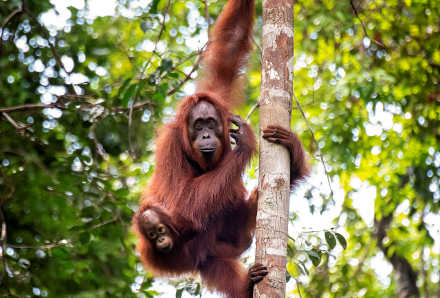 Diese eindrucksvolle Aufnahme von Latika Nath zeigt eine Orang-Utan-Mutter mit ihrem Jungen hoch oben in den Baumwipfeln des Tanjung Puting Nationalparks auf Borneo. Das Bild wurde 2017 aufgenommen – in einem Gebiet, das für seinen Einsatz im Schutz bedrohter Orang-Utans bekannt ist, jedoch stark unter den Folgen von Waldbränden und menschlichen Eingriffen leidet.