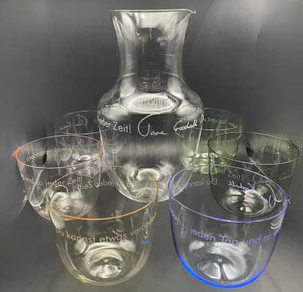 Trinkservice No.267 „Alpha“ von Lobmeyr. Mit Gravur eines Dr. Jane Goodall Zitats