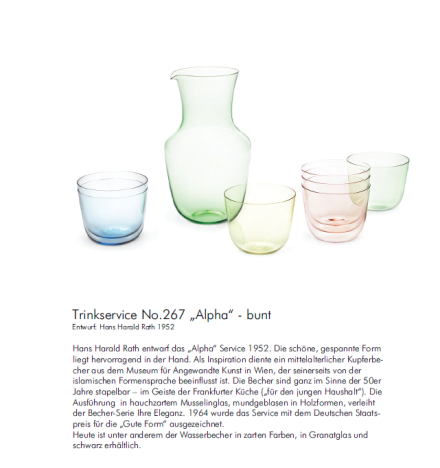 Dieses außergewöhnliche Trinkservice No.267 „Alpha“ von Lobmeyr, entworfen 1952 von Hans Harald Rath, vereint zeitlose Handwerkskunst mit einer inspirierender Botschaft von Dr. Jane Goodall. Das Set besteht aus sechs Gläsern und einem Krug.