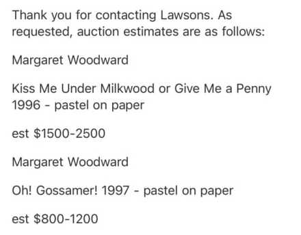 65 cm x 65.5 cm, Pastel on Paper on Canvas, signed and dated '97. Based on Dylan Thomas' Under Milkwood, independently valued at $800-$1200