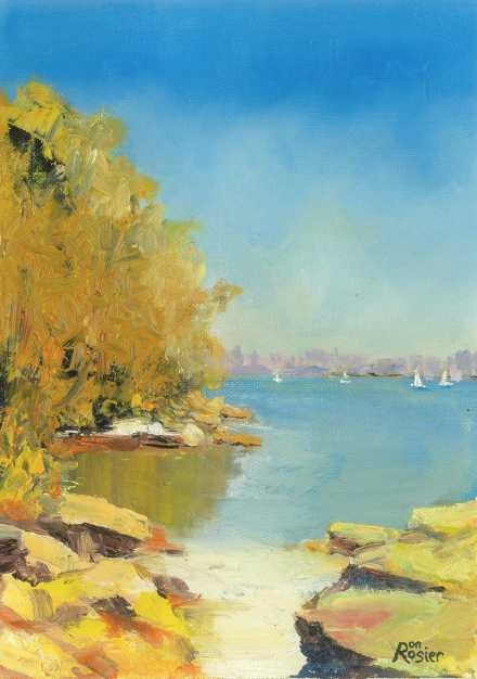 Ron Rosier is a retired Sydney-based artist whose oil paintings are inspired by his travels through outback Australia, capturing the quiet beauty of rural landscapes in warm, earthy tones