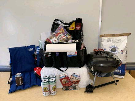 Small BBQ, 2 Stadium Chairs, Grill Caddy, 49er Bottle Opener, 49er Can Cozies, Giants Can Cozies, plates, BBQ, tools, utensils, Charcoal, Ultimate Snacks, 4 pack of Humble Sea beer