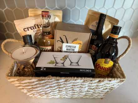 Whether you're hosting friends or enjoying a cozy night in, this basket delivers a perfect blend of bold espresso flavor and smooth cocktail vibes.
