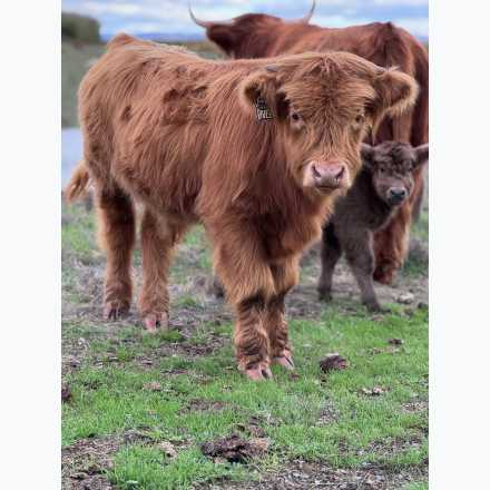 We have a limited selection of Highland cattle available, including registered heifer calves, registered bull/steer calves, and one unregistered heifer. Our calves are handled with care from day one, and young calves purchased through this auction include a scheduled farm tour visit to meet your calf in person prior to weaning.