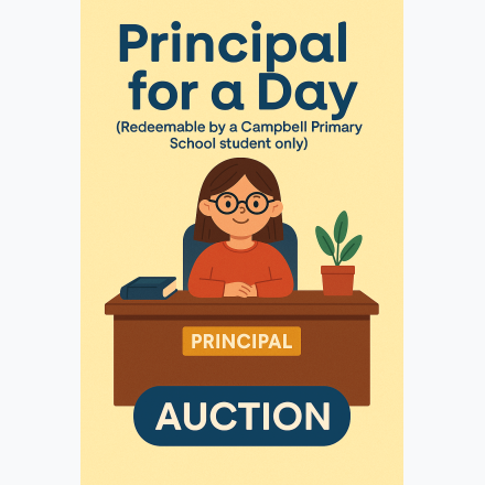 · “Principal for a Day” and other school experiences are redeemable by Campbell Primary School students only, and must be used within the 2025–2026 school year.