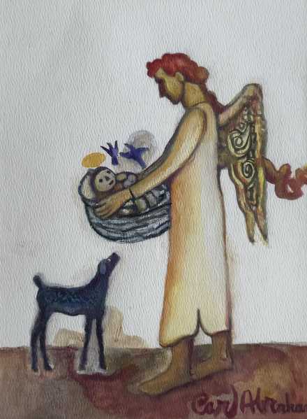 Watercolour - This evocative and atmospheric watercolour painting by Carl Abrahams transports the viewer to a serene and contemplative world. Its soft, muted colors and hazy forms create a sense of peace and stillness, while its subtle details and nuanced composition invite closer inspection. A beautiful and meditative work of art.