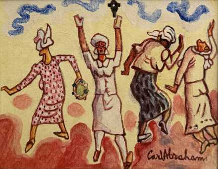 Acrylic on canvas, 8x10 - This intimate and expressive portrait painting by Carl Abrahams captures the essence of its subject. Its bold, gestural brushstrokes and vibrant hues create a sense of personality and character, while its subtle details and nuanced composition invite closer inspection. A captivating and insightful work of art.