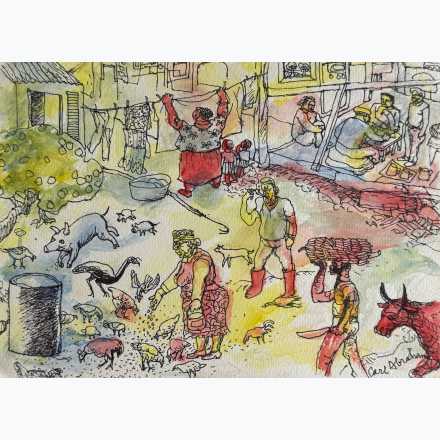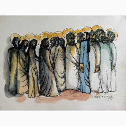 Carl Abrahams (1911–2005) was a Jamaican master painter known for his distinctive style and significant contributions to Caribbean art. Largely self-taught, he began his artistic career as an illustrator and cartoonist before transitioning to fine art. His work, often characterized by vibrant colors and surreal, religious, and historical themes, played a crucial role in shaping Jamaican visual culture.