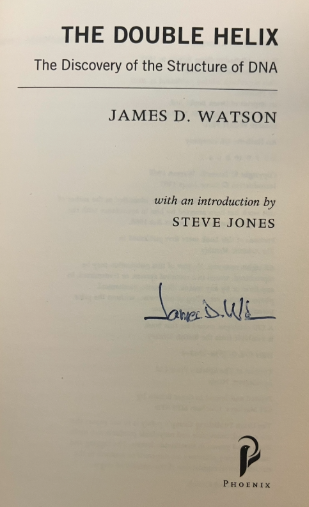 Anna obtained prof. Watson's signature during her time at Cambridge, when she got the chance to meet him and speak to him at the famous "The Eagle" pub, in which James Watson and Francis Crick famously announced that they "had found the secret of life". The book has a very special meaning to Anna, as having read it inspired her to subsequently read Rosalind Franklin's account of the DNA structure discovery. Anna mentioned reading both of the books in her Personal Statement, which ultimately led to her receiving an offer from and studying at the University of Cambridge.