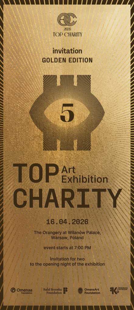 This voucher grants admission for two persons to the exclusive Opening Night of the TOP CHARITY ART EXHIBITION on 16 April 2026 at 7PM at The Orangery at Wilanów Palace in Warsaw, Poland.
