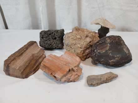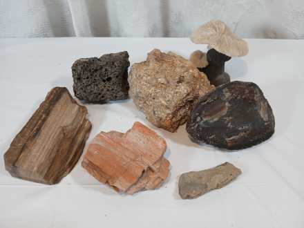 #49 Assorted Rocks, Petrified Wood, Mushroom Coral & Reference Book