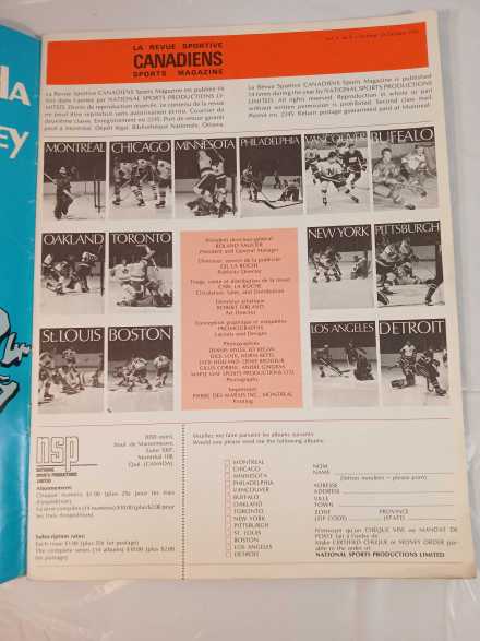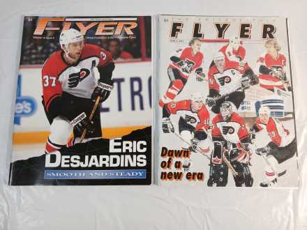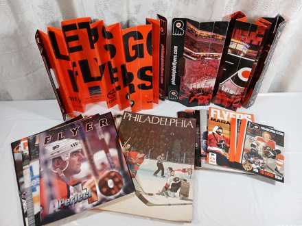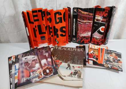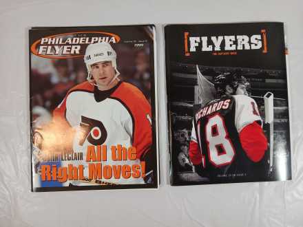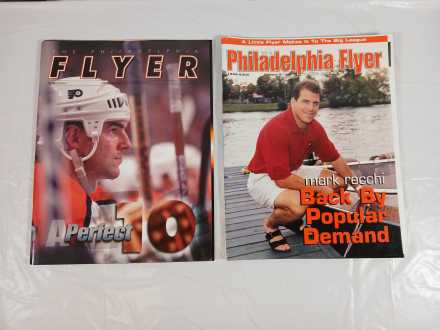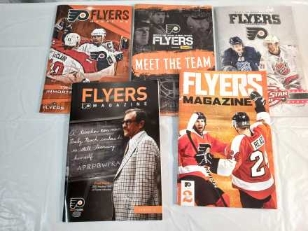 1970 Philadelphia issue of National Sports Productions magazine, Canada Sports review, in both English and French. 1976-1977 Philadelphia Flyers Yearbook. (5) issues of Flyers magazine (1) 2010-2011 (1) 2011-2012 (2) 2013-2014 (1) 2014-2015. The Philadelphia Flyers magazine, (2) 1996-1997, (1) 1997-1998, (1) 1999, (1) 1999-2000 (1) 2008. Assorted inserts.