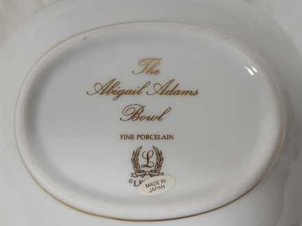 Lenox Abigail Adams 6-1/2" x 5-3/4" bowl, made in Japan. Lenox "Olympia PL" with platinum rim espresso set, (5) cups and (8) saucers