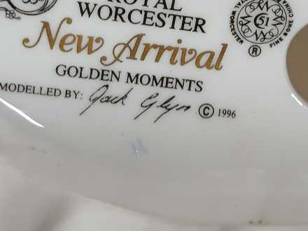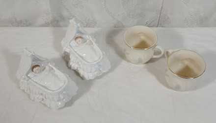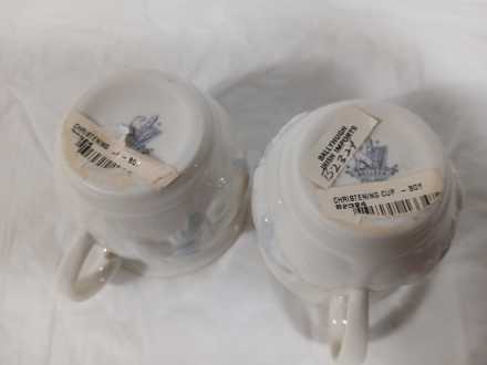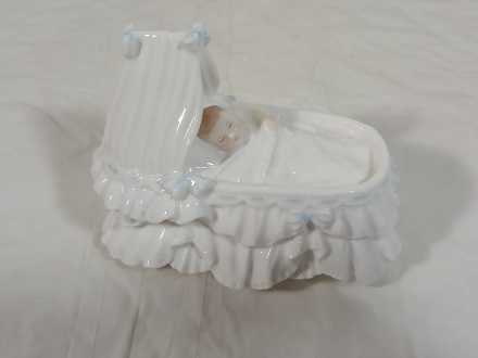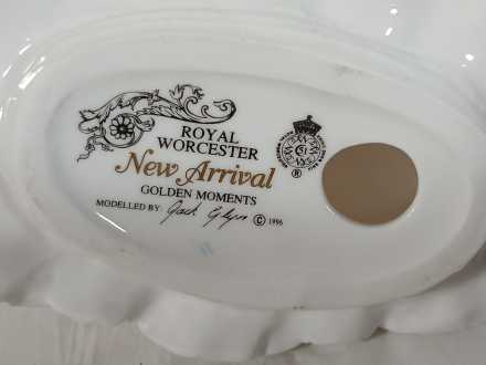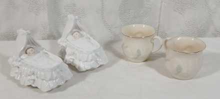 #11 Royal Worcester Baby "New Arrival" figurines and Belleek Christening Cups