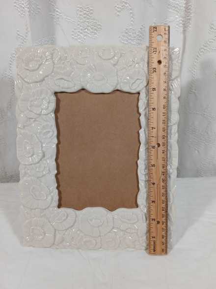 Lenox Poppies picture frame for 5" x 7" photo, frame measures 8-3/4" x 11". Lenox picture frame for 8" x 10" photo, frame measures 12-1/2" x 14-1/2".