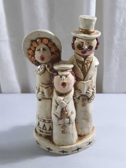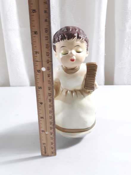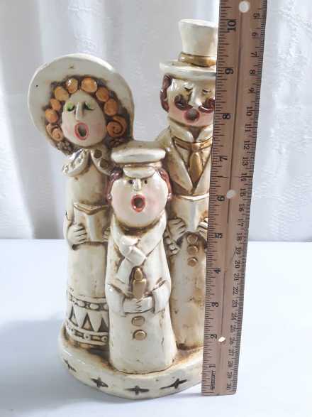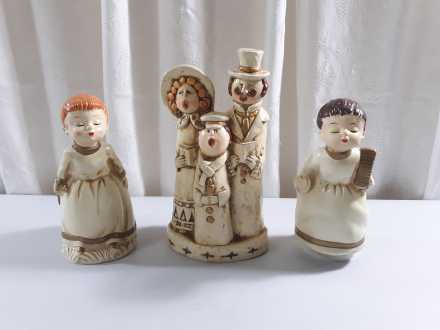 Vintage Berman and Anderson, Inc figurines. Musical Carolers figurine, plays "O Come, All Ye Faithful". Working condition. Musical Kissing Angel figurine, plays "Silent Night", working condition. Non-musical Kissing Angel figurine.