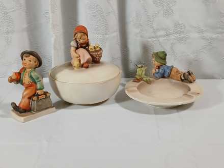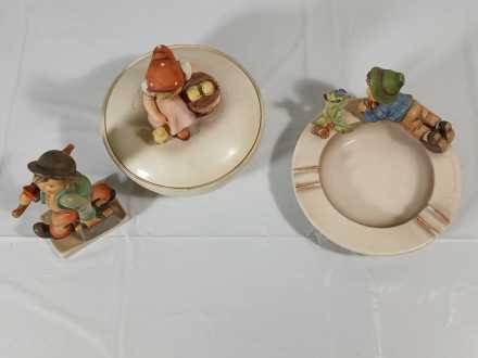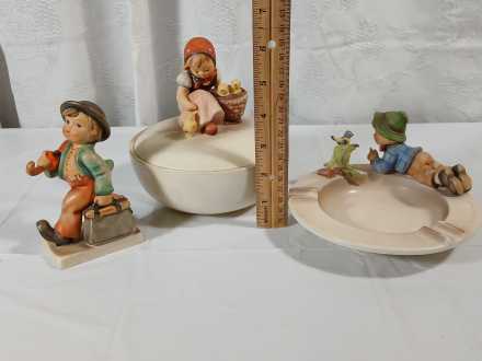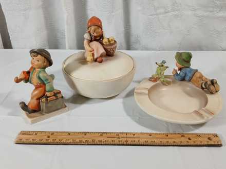 #19 Vintage Hummel Lidded Dish, Ash Tray & Figurine